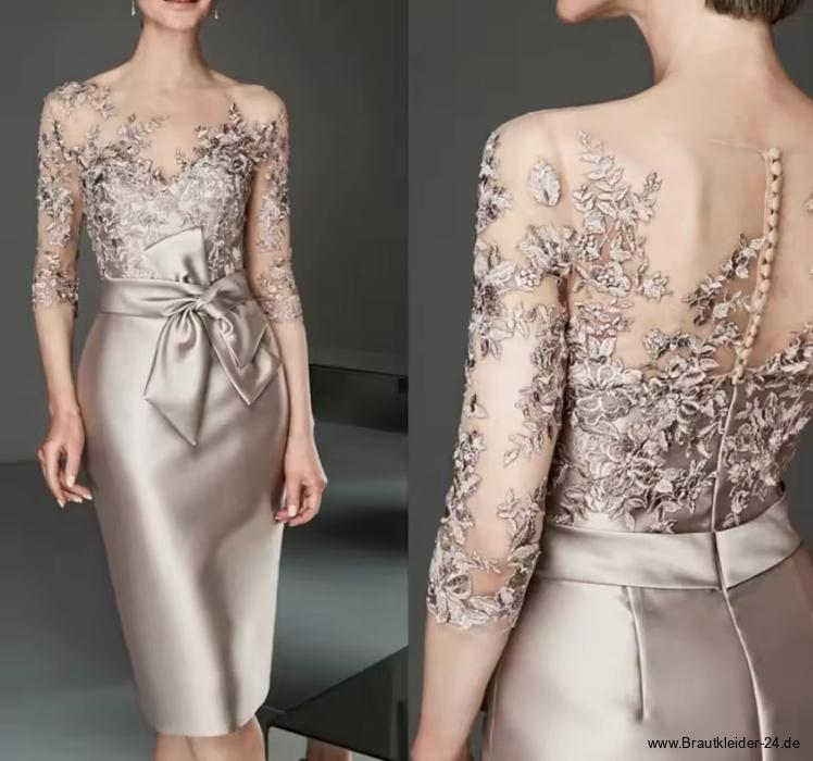Bleistift Brautmutterkleid Flora Knielang in Gold mit Spitze