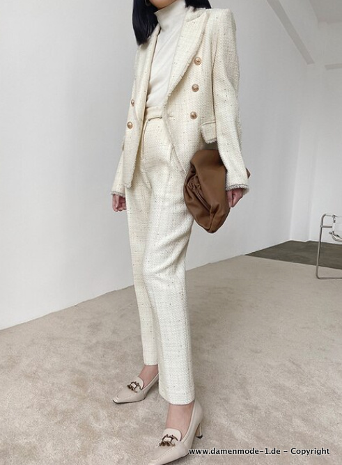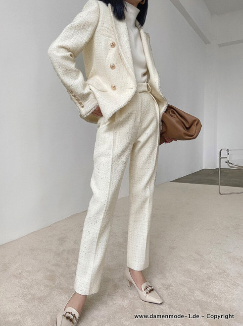 A Linie Business Hosenanzug in Weiß mit Tweed Blazer