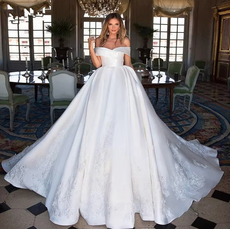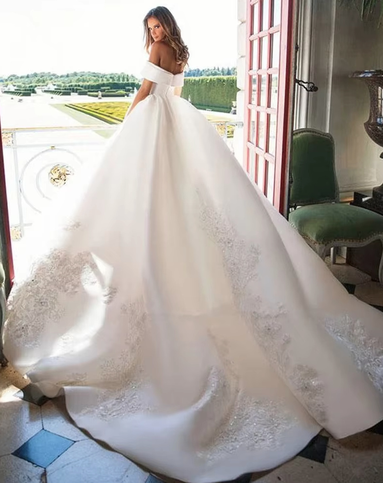 Off-the-shoulder ball gown Camilla Classic with embroidery and train