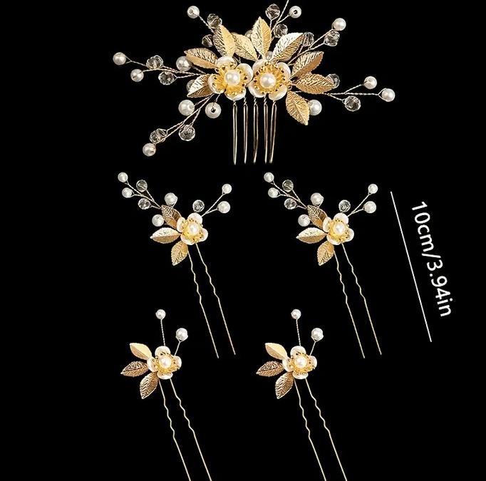 Bridal Hair Accessory Set Fanie Romantic in Gold with Flowers