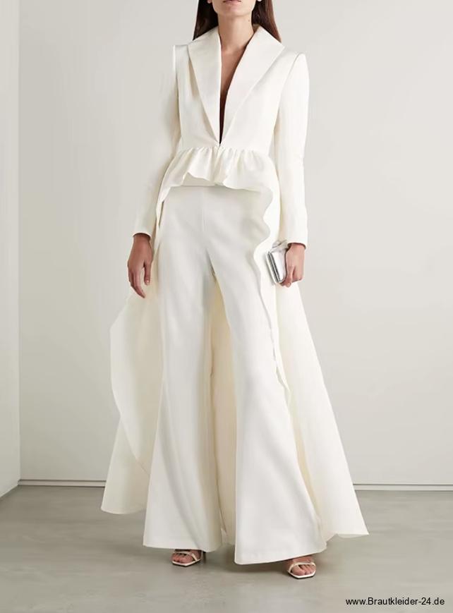 Standesamt Braut Outfit Fotini in Weiß Long Blazer mit Hose im Set