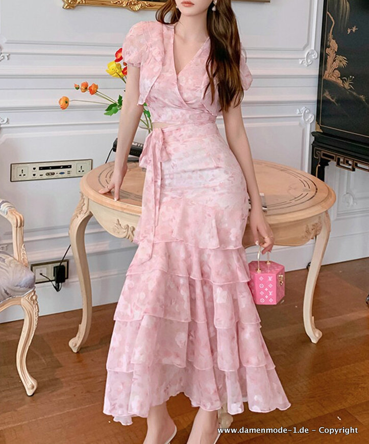 Eleganter Zweiteiler Party Fest Hochzeit Damenoutfit in Rosa