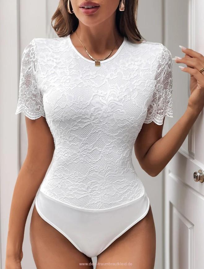 Kurzarm Body Hilaria für die Braut mit Spitze und Rückenausschnitt in Weiß