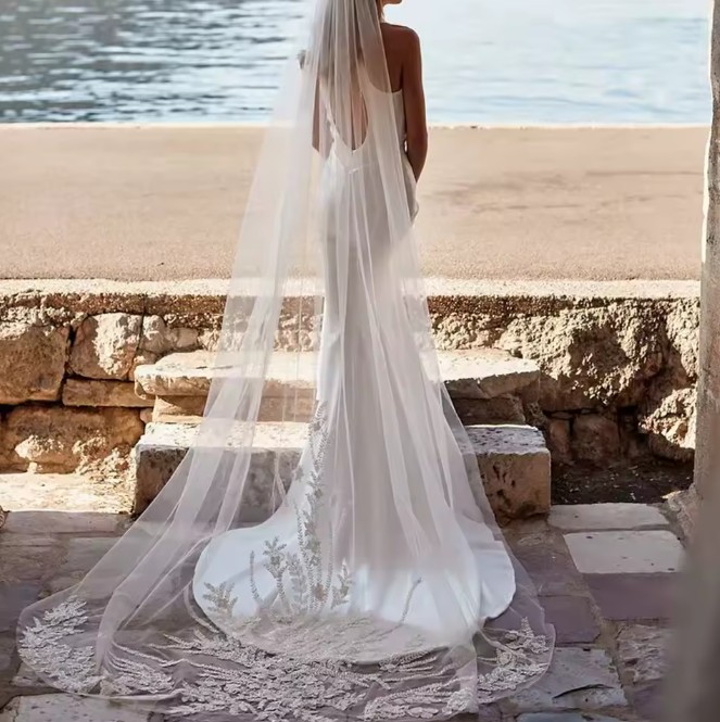 Sleeveless fit and flare wedding dress Padme with train