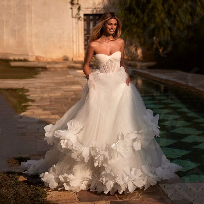 Schulterfreies A Linie Brautkleid Panthea mit Lingerie Oberteil und 3D Blumen