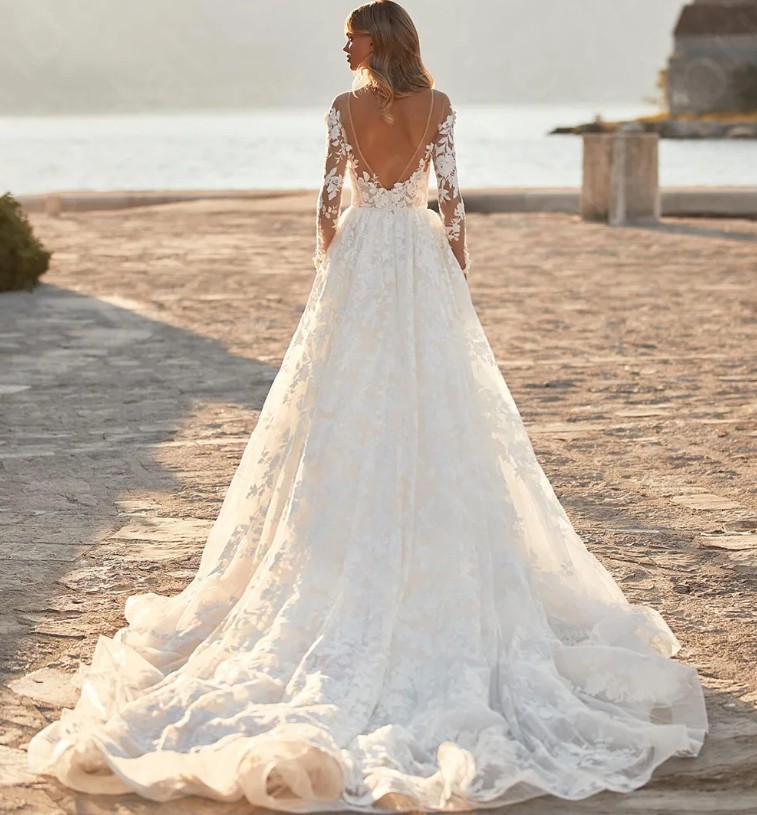 A Linie Langarm Brautkleid Paulina mit Tattoo Spitze und Schleppe