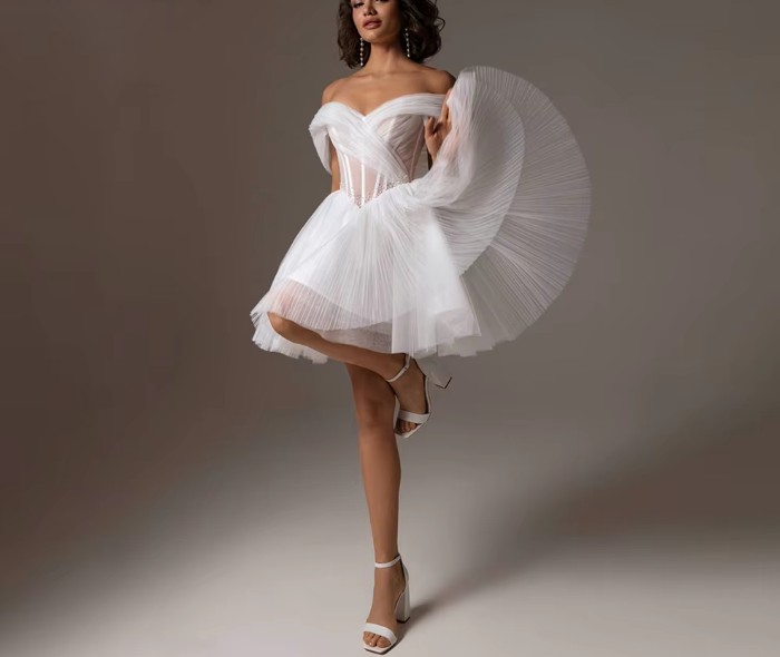 Off-the-shoulder short wedding dress Imelda with lingerie top