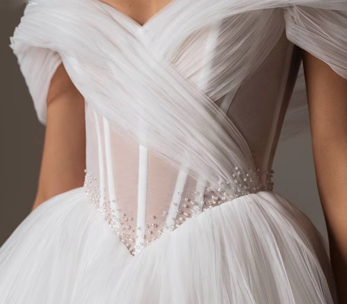 Schulterfreies Kurzes Brautkleid Imelda mit Lingerie Oberteil