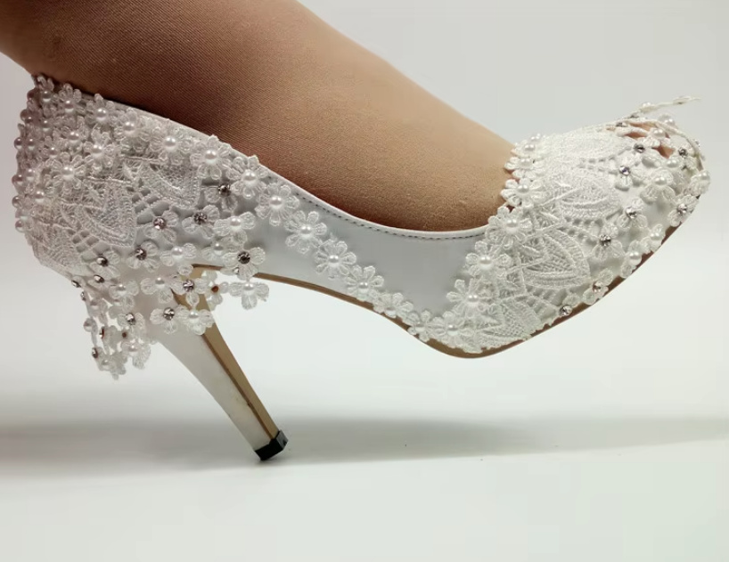 Hochzeitsschuhe Brautschuhe High Pumps Daliah mit Spitze und Knöchelriemen