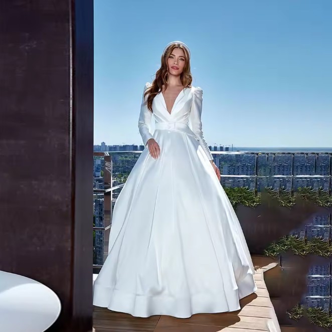 Simple A-line long-sleeved wedding dress Pauline with back cutout