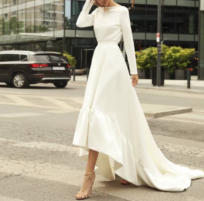 Simple long-sleeved high-low wedding dress Persephone with train