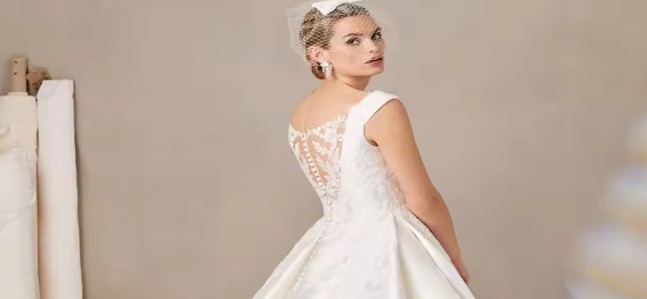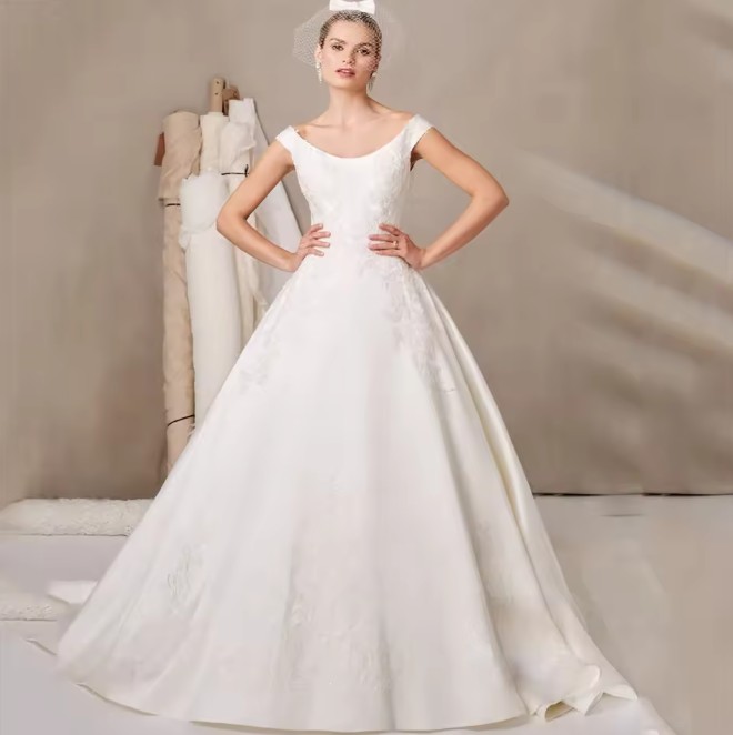 A-line wedding dress Pauline with tattoo lace and train