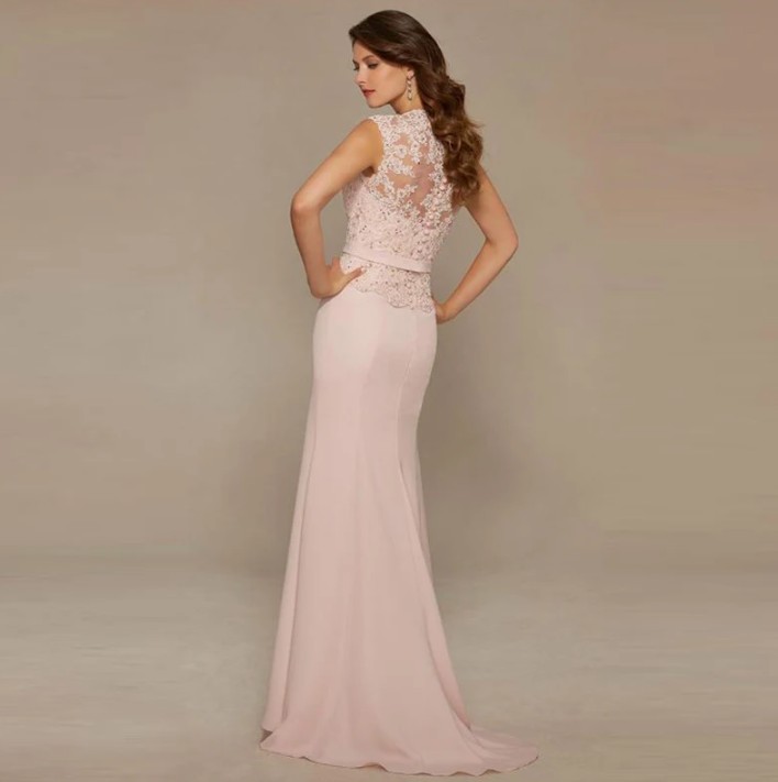 Sleeveless mother of the bride dress Ina 2026 in soft pink with lace