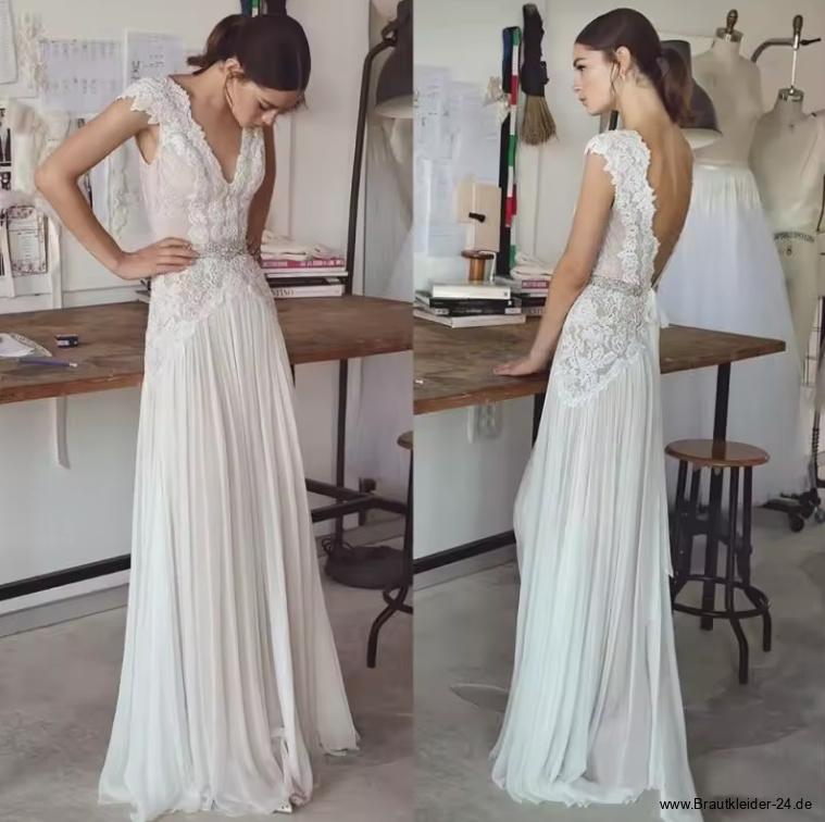 A Linie Boho Style Brautkleid Gill mit Spitze Rückenfrei