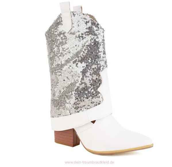 Brautschuhe Glitzer Western Cowboy Stiefel Irmtraud mit Silber Pailletten