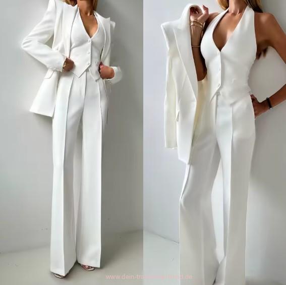 Dreiteiliger Hosenanzug für die Braut Iliana in Weiß Standesamt Mode