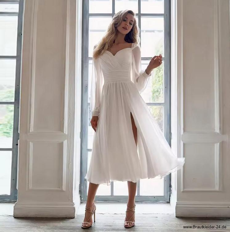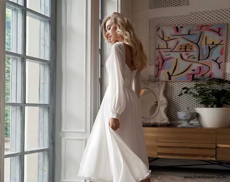 Langarm Chiffon Standesamt Brautkleid Geertje Wadenlang