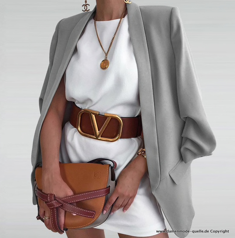 Streetwear Damen Blazer Mit Reverskragen in Silber