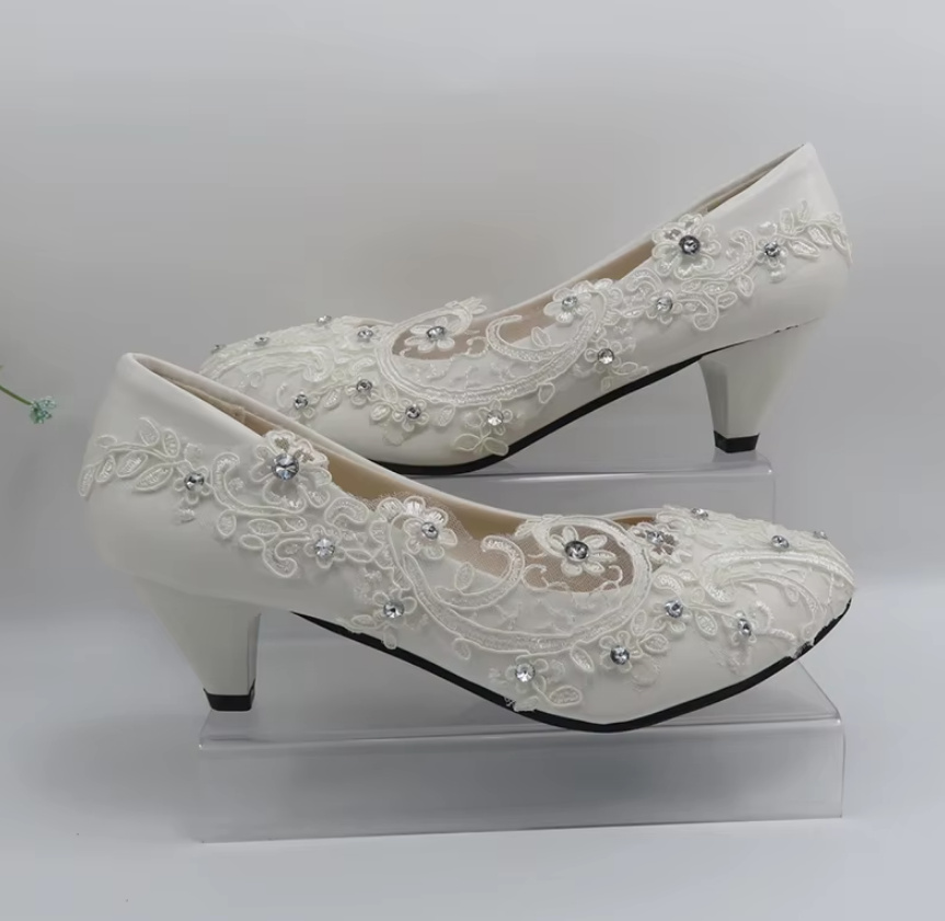 High Heels Brautschuhe Desiree mit Blumen Spitze und Pailletten Absatz 5 – 8 oder 11 cm