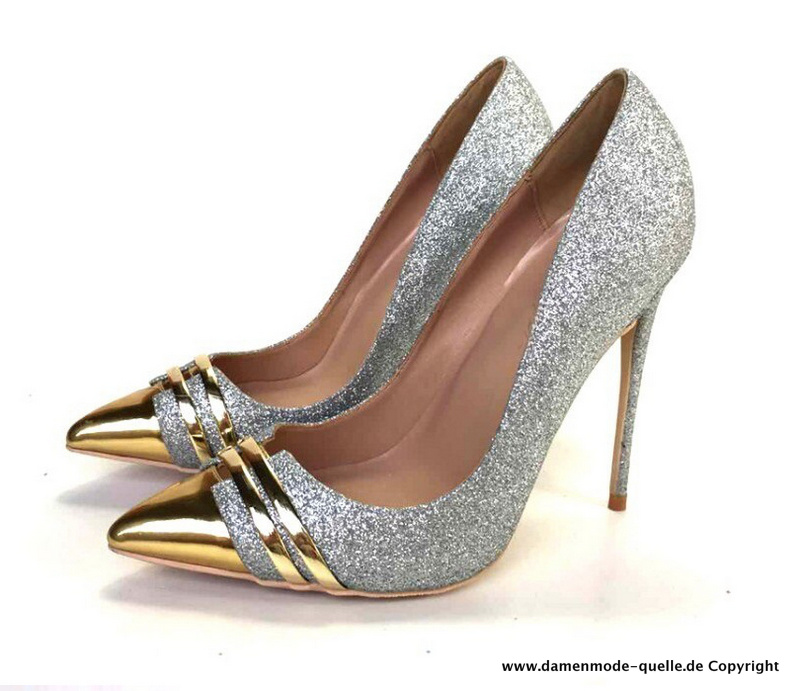 Damen Stiletto High Heel Pumps Abendschuhe in Silber bis Gr43