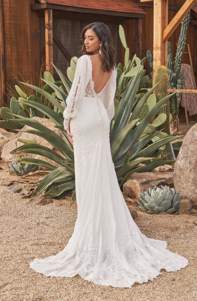 Fit and Flare Brautkleid Eleonore mit Blumen Spitze und Schleppe Ärmel Abnehmbar