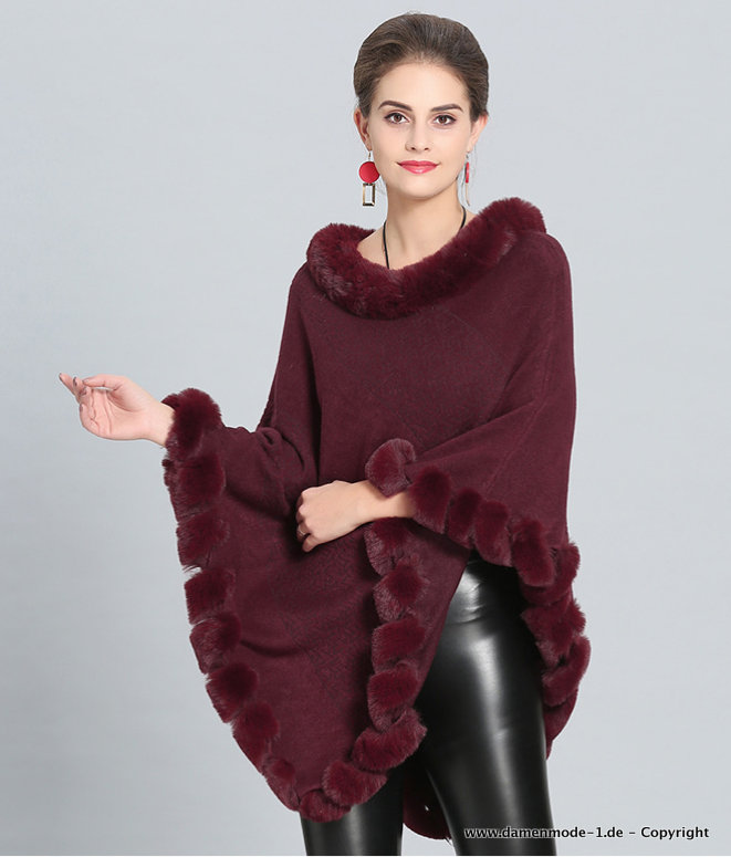 Herbst Frühling Damen Poncho Asymmetrisch in Weinrot Dunkelrot