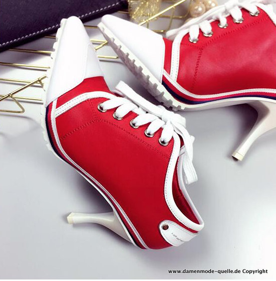Peep Toe Stiletto High Heels 8,5 CM Leder Damenschuhe in Rot