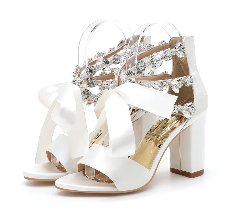 Satin Kristall Braut Sandaletten Hochzeitsschuhe in Weiß