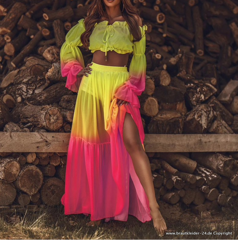 Sommeroutfit Sexy Zweiteiler Schulterfrei Bunt