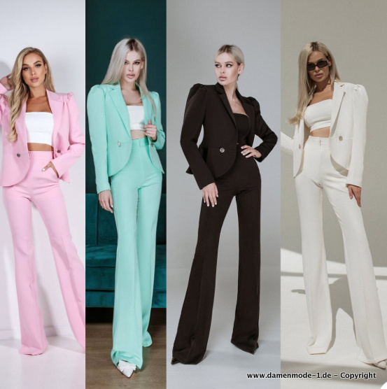 Damen Hosenanzug Elegant in Weiß Rosa Schwarz Blau oder Grün