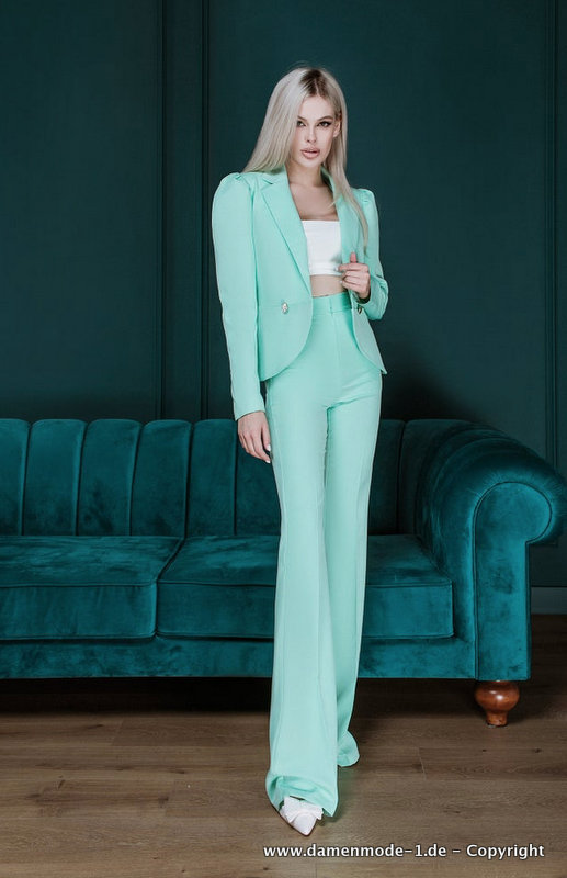 Damen Hosenanzug Elegant in Weiß Rosa Schwarz Blau oder Grün