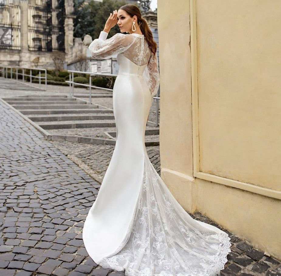 Fit and flare long-sleeved wedding dress Ann-Britt with lace and train