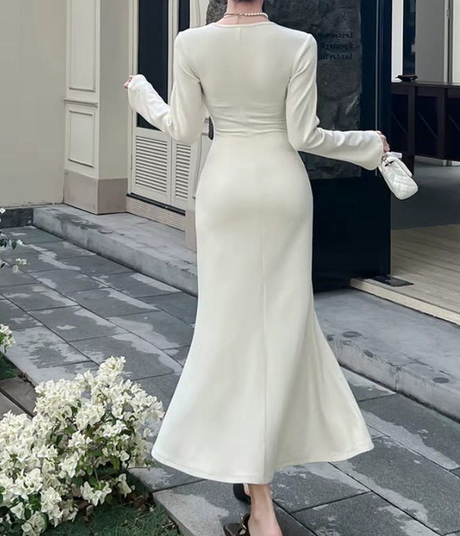 Fit and flare vintage style long-sleeved civil wedding dress Ingela
