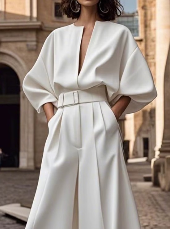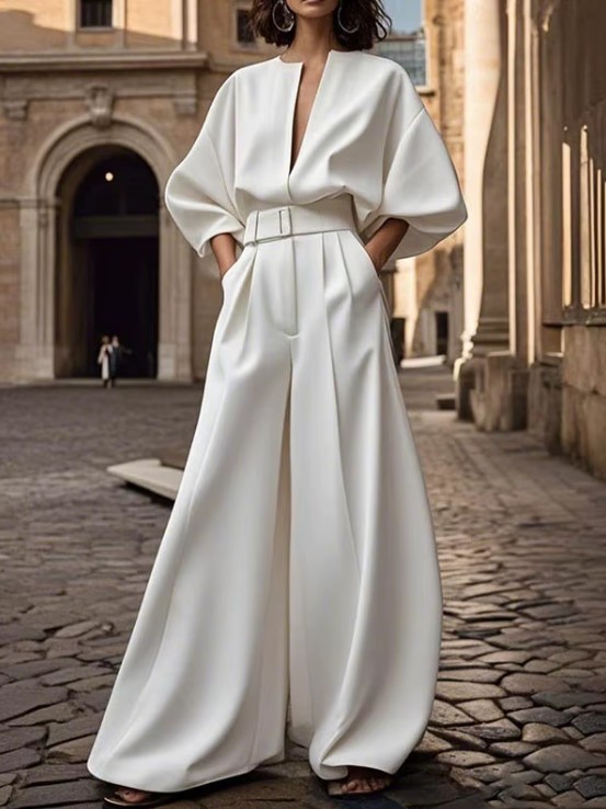 A Linie Langarm Braut Overall Einteiler Inoa mit V Ausscnitt