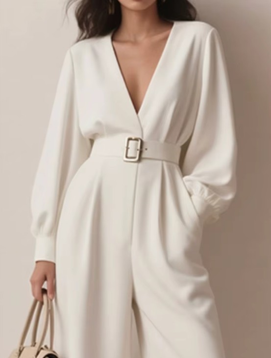 Langarm Braut Overall Einteiler Inken mit Sexy V Ausschnitt und Cut Outs