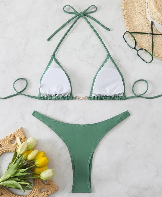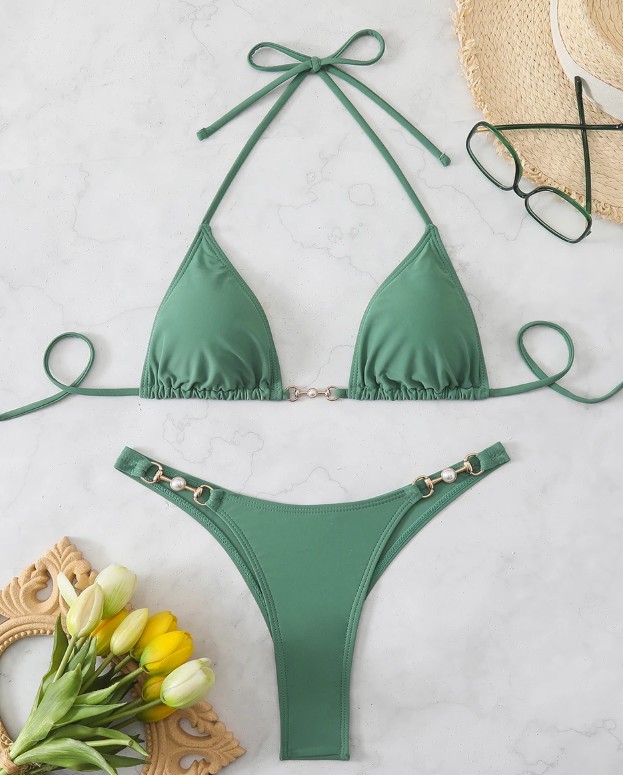 Halterneck Bikini Shirin in green with pearls