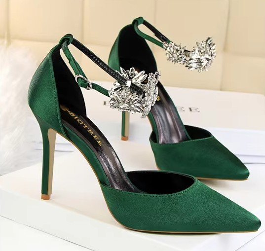 High Heels Stiletto Satin Brautschuhe Inga in Grün mit Strass Applikationen