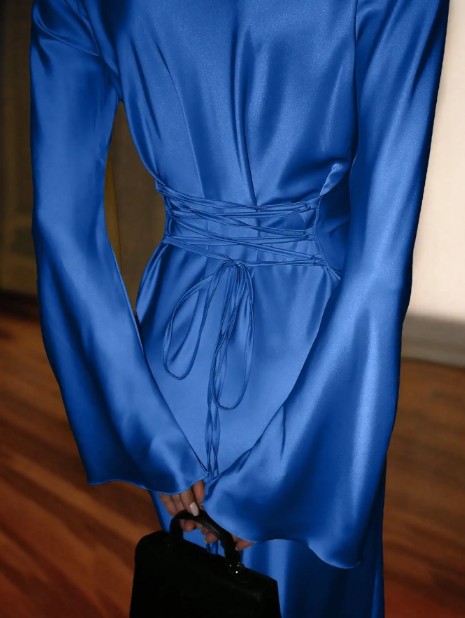 Long-sleeved satin maxi dress Friederieke Elegant in blue