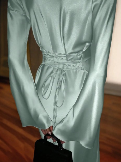 Langarm Satin Maxikleid Friederieke Elegant in Mintgrün