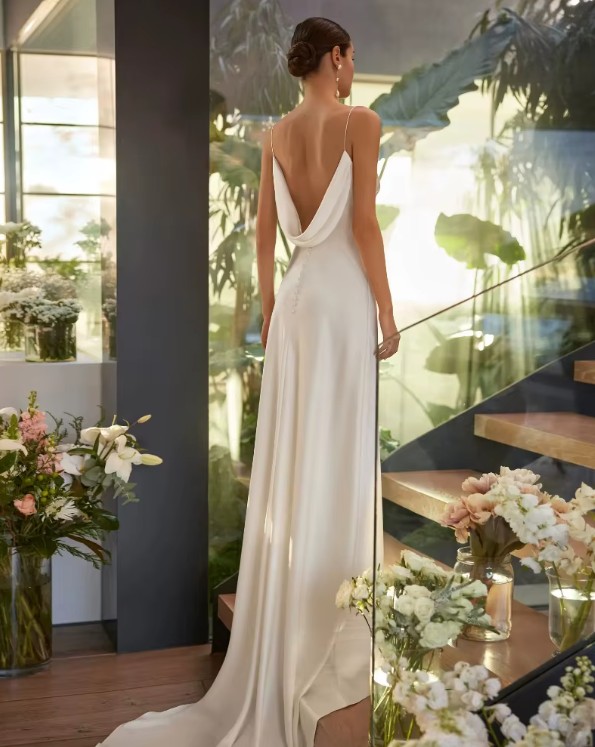 Spaghetti strap clean chic wedding dress Iolana with train backless