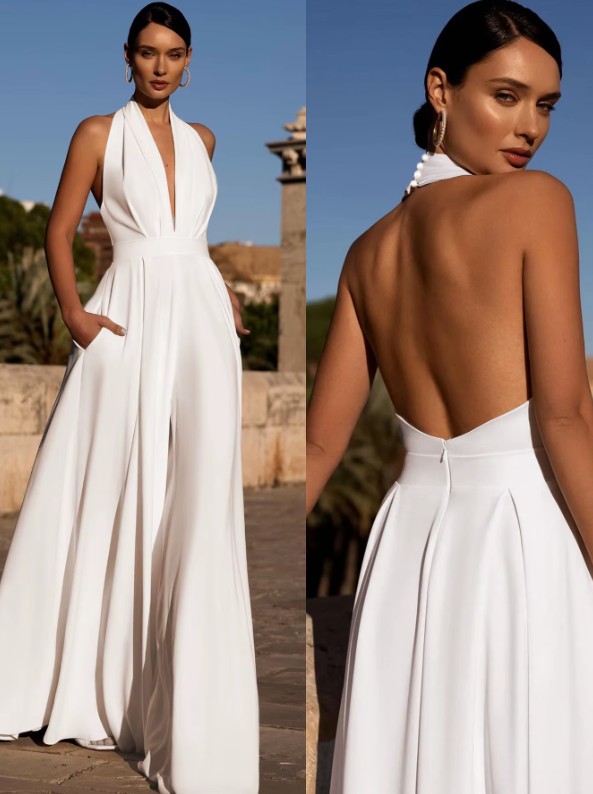 Neckholder Braut Einteiler Ingvelde mit Sexy V Ausschnitt