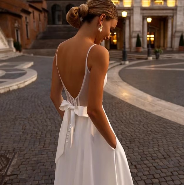 Spaghetti strap clean chic wedding dress Ingmari with back cutout and train