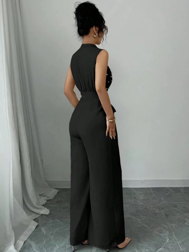 Elegant one-piece jumpsuit in black with pearls