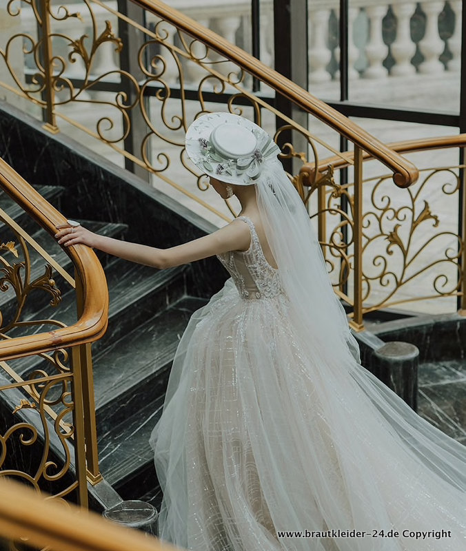 Brauthut Belana mit Tüll und Blumen Stickereien
