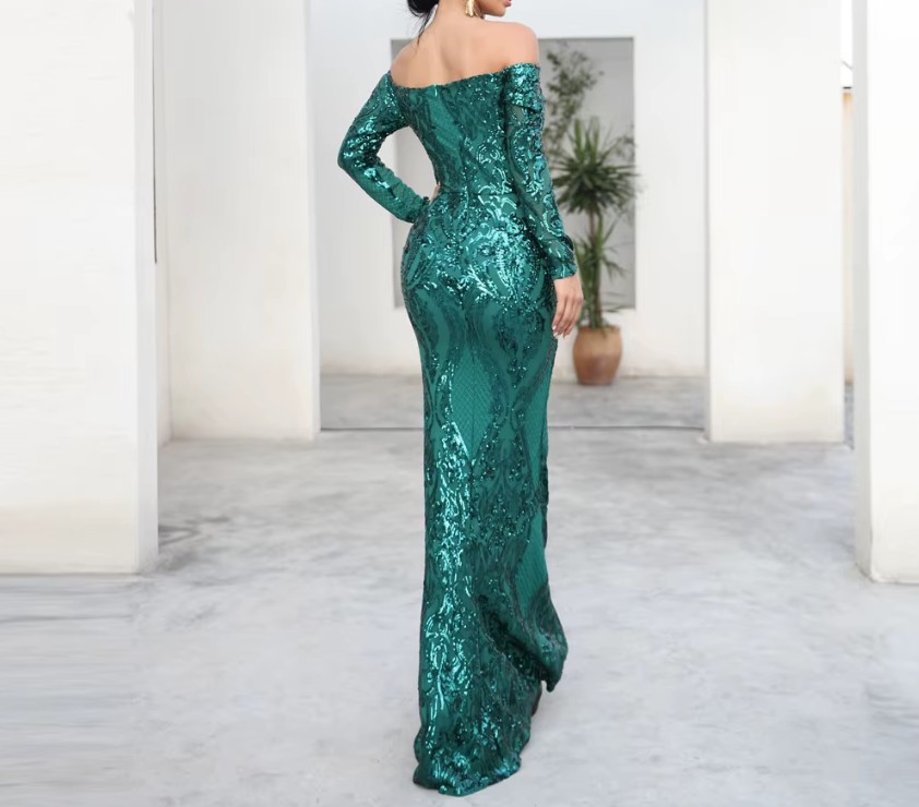 Off-the-shoulder sequined glitter evening dress Dafne, floor-length in green