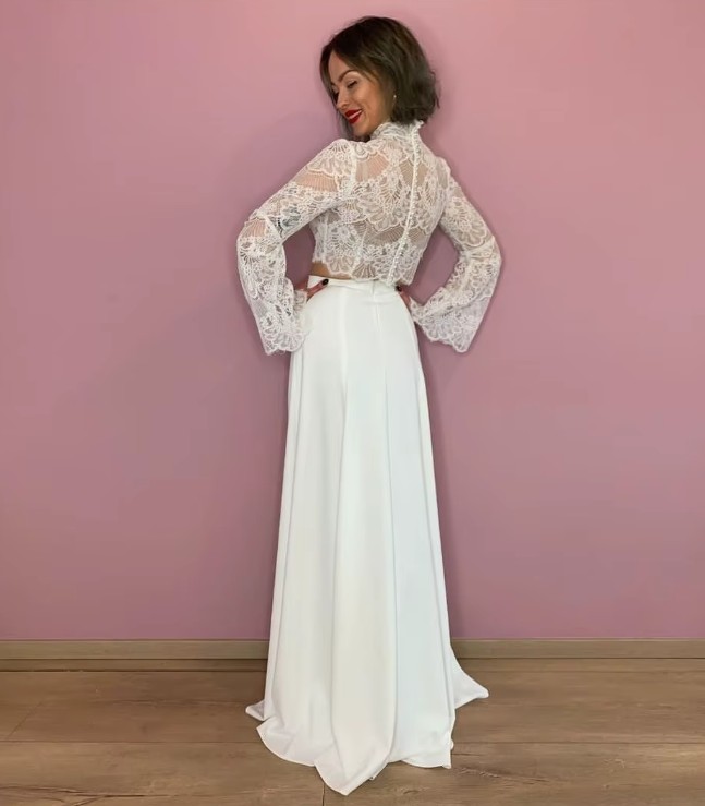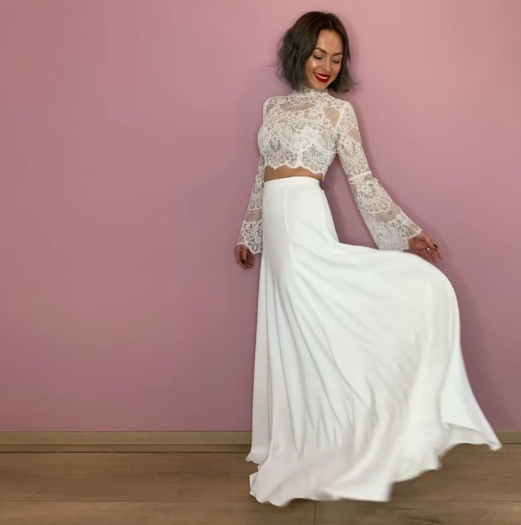 Two-piece long-sleeved boho wedding dress Irina with lace