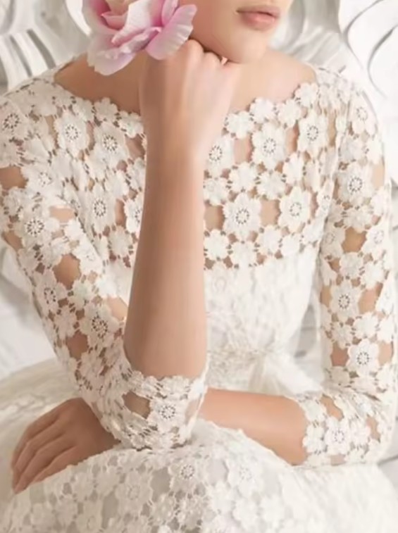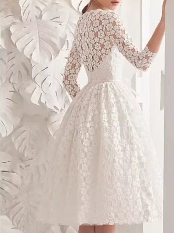 A-line long-sleeved lace wedding dress Isabelle, calf-length