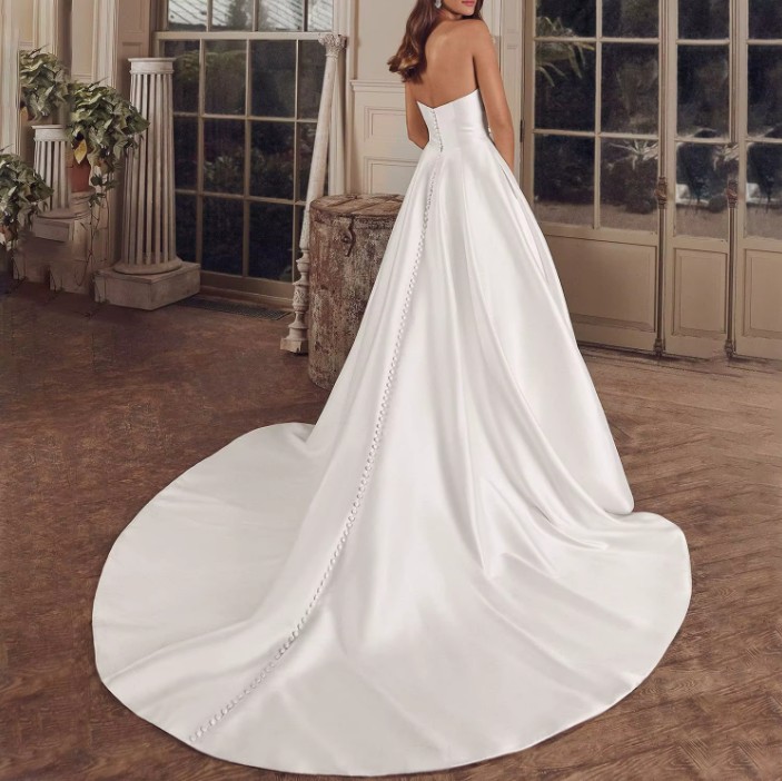 Schulterfreies Satin Clean Chic Brautkleid Innozentia mit Schleppe