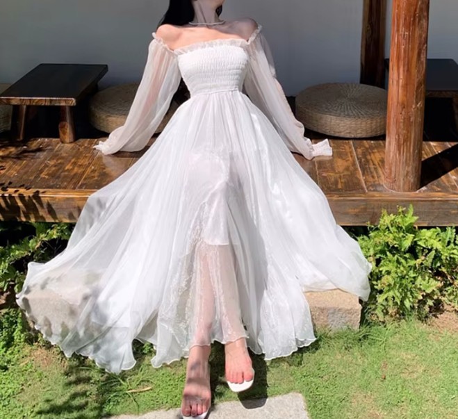 A-line long-sleeved chiffon civil wedding dress Iolanthe