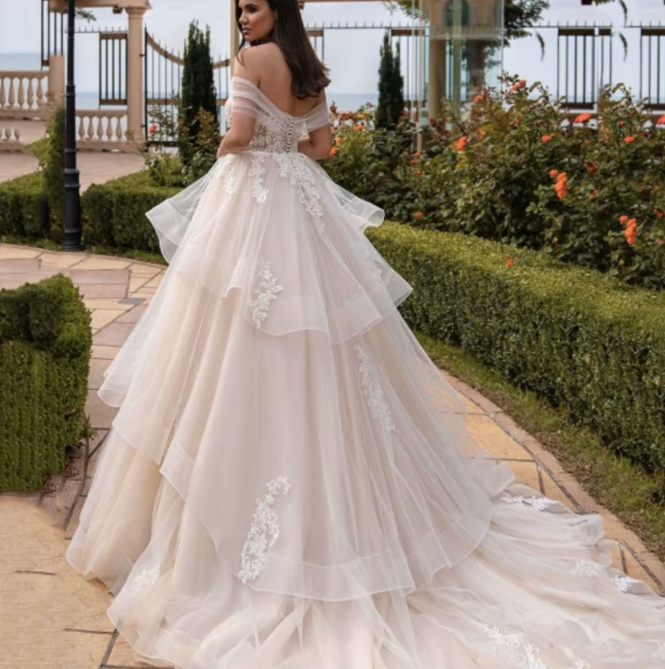Off-the-shoulder ball gown Christiana with lace ruching and train